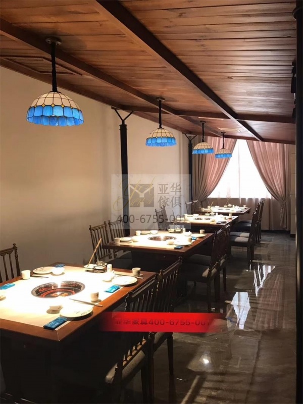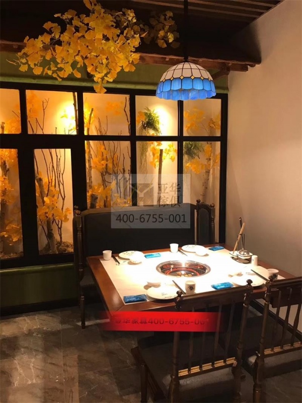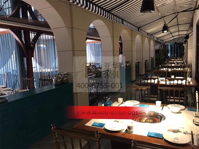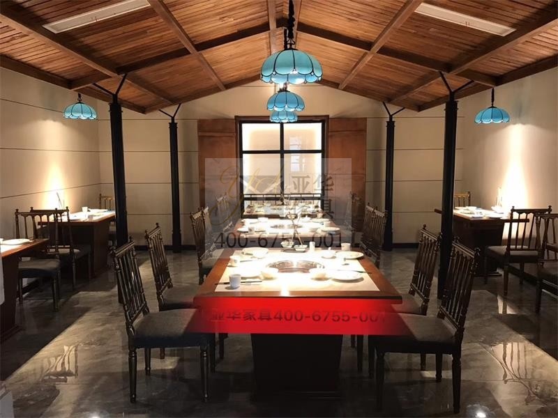亚华家具为山东章丘骄龙豆捞海鲜鱼市定制的火锅桌及配套餐椅卡座